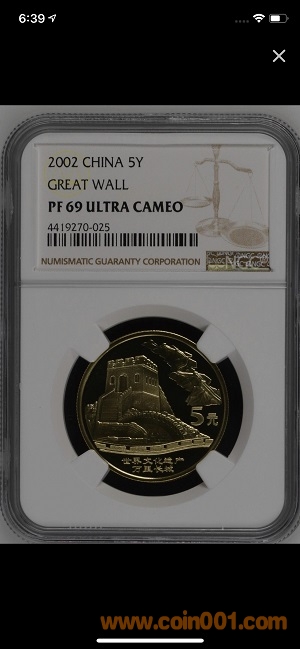 碟MS69RD PL 620元 帶卡冊證書