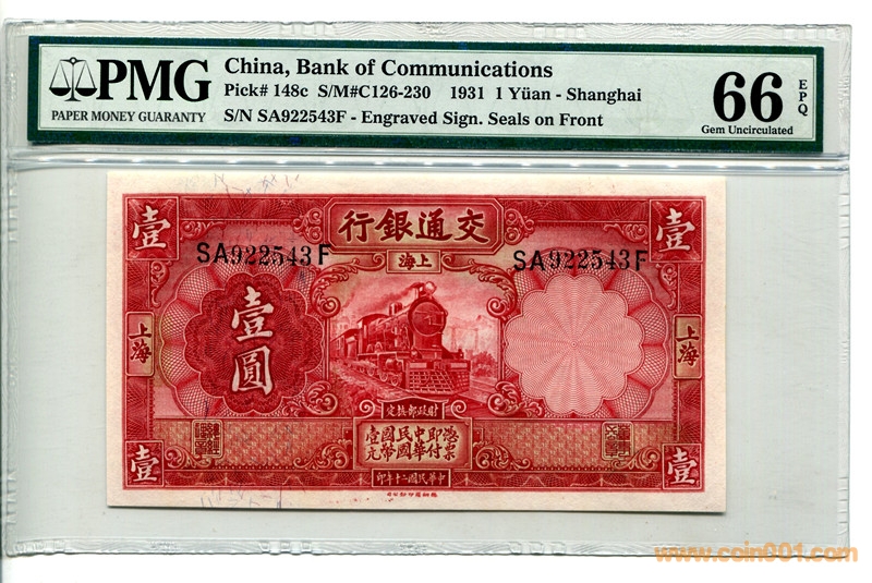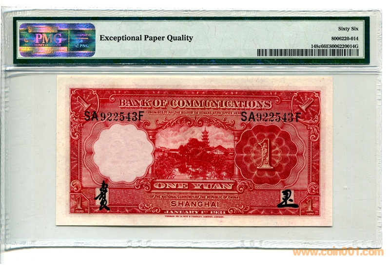 PMG66分民國20年交通銀 ..