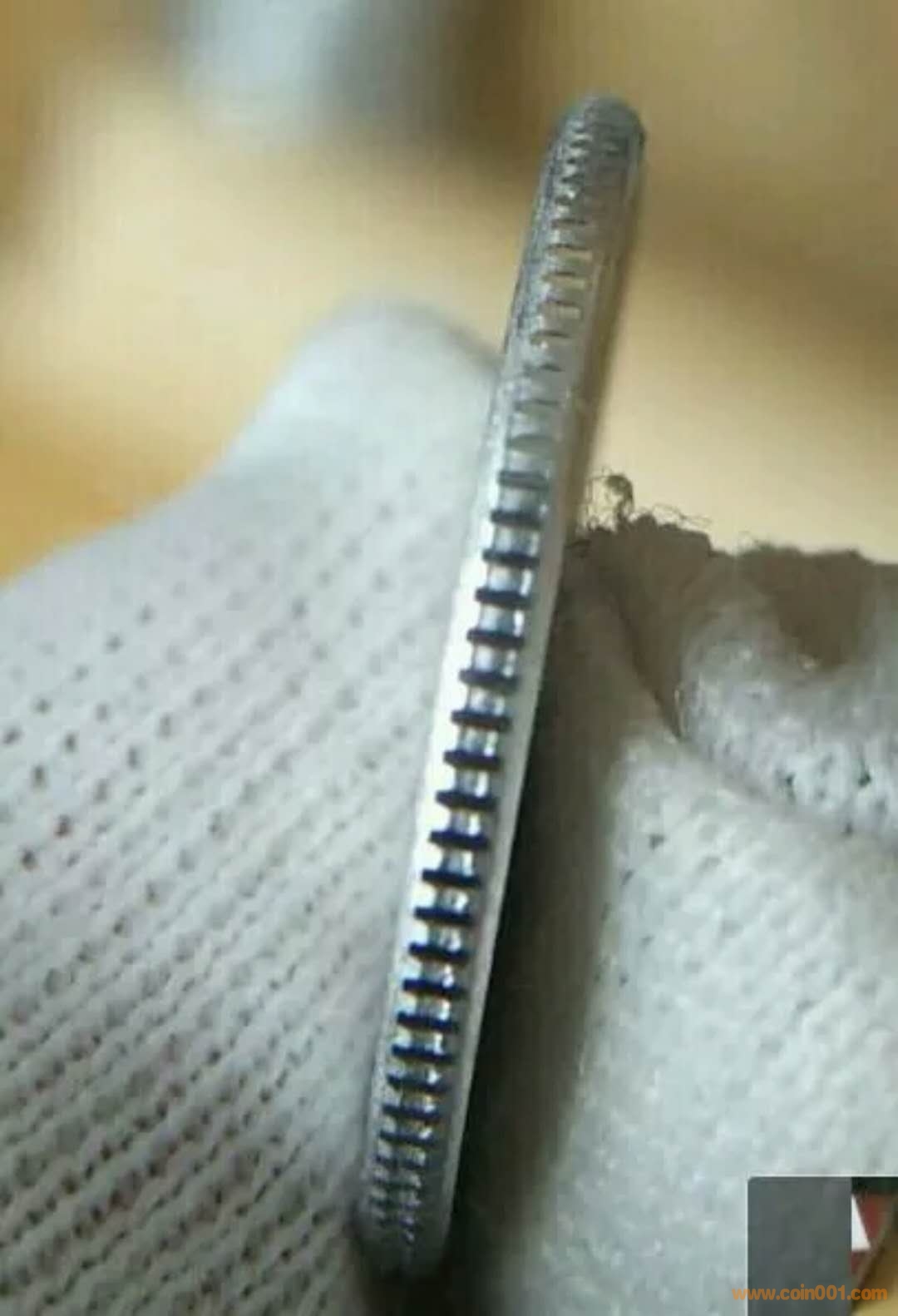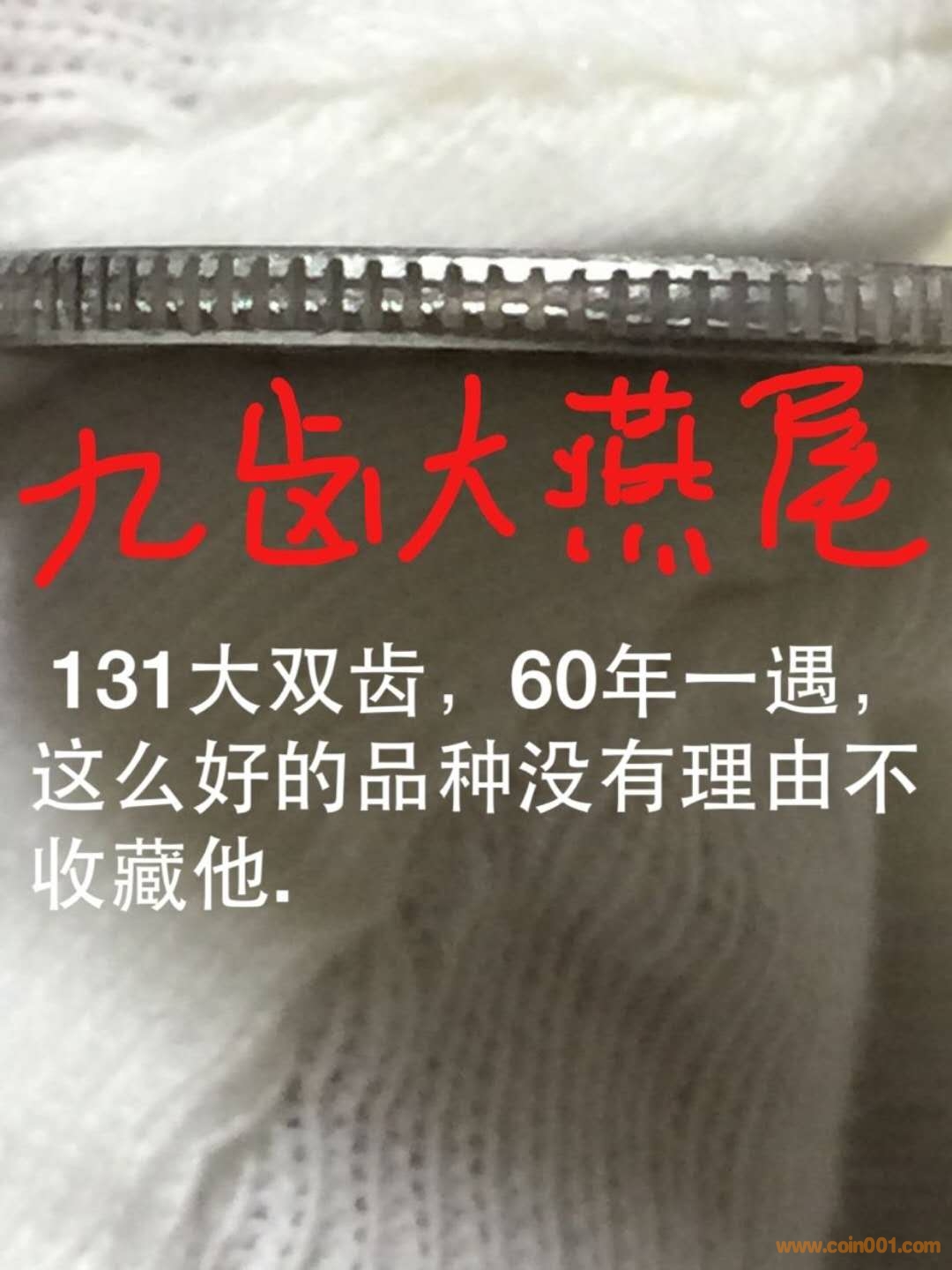 請(qǐng)孫克勤老師和王版主指教,我對(duì)“131大雙齒錯(cuò)幣”的邊齒形成雙齒成因分析成立嗎?很多人說是模圈疲勞爆裂形成的,我不贊成這個(gè)觀點(diǎn),因?yàn)殡p齒是凹進(jìn)去的,只有模圈爆裂突出來后壓印的硬幣才會(huì)凹進(jìn)去,這樣的話,硬幣在模圈里就出不來了,所以我認(rèn)為此觀點(diǎn)不成立。而是幣餅在壓印之前,滾邊過程形成有頭有尾的41齒左右的雙齒(壹分硬幣邊齒101齒,頭是圓弧的,尾是分叉的),帶雙齒的幣餅壓印之后就形成了2013壹分硬幣的131大雙齒錯(cuò)幣,并于2013年發(fā)行到市場(chǎng)流通。如圖所示。