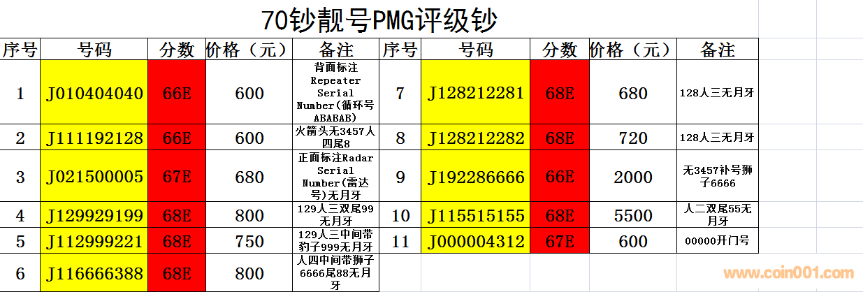 出70鈔靚號(hào)PMG評(píng)級(jí)鈔11 ..