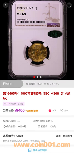 評級普通(精制)紀(jì)念幣交易