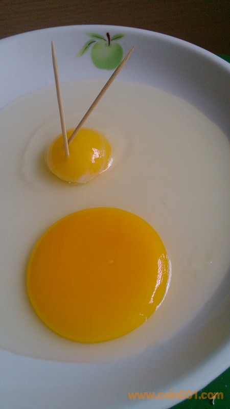 先看看我們的土雞蛋和飼料雞蛋對(duì)比圖:1.土雞蛋蛋黃顏色為純正的蛋黃色,而普通雞蛋顏色偏紅。2.土雞蛋蛋黃緊湊,插牙簽而不倒,這是普通雞蛋做不到的。3.土雞蛋蛋清顏色白而透明,且能膠結(jié)在一起,普通雞蛋蛋清渾濁,清稀。4.土雞蛋蛋黃因?yàn)槊芏却蠖螤钊玳蠙烨?,用筷子都能夾起來(lái)。而普通雞蛋蛋黃稀松,形狀如餅。一碰就會(huì)散掉。