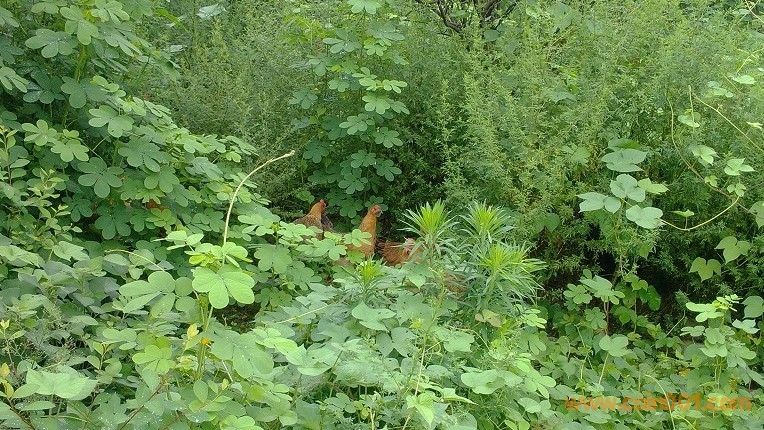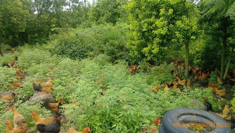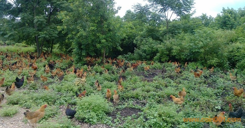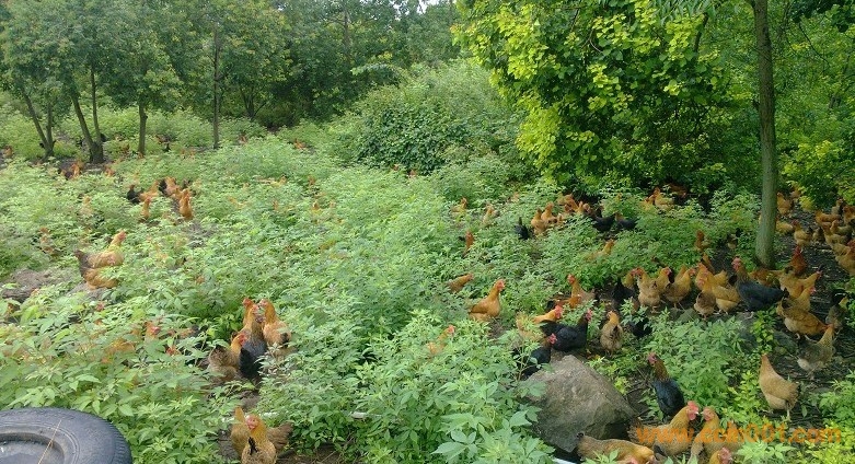 再看看我們的小母雞所處環(huán)境:真正的生態(tài)果園,占地300多畝,足夠小母雞們自由活動(dòng)了。果樹(shù)都是不打農(nóng)藥的,果園內(nèi)草場(chǎng)密度很大,各種蟲子很多,是小土雞們最好的點(diǎn)心。