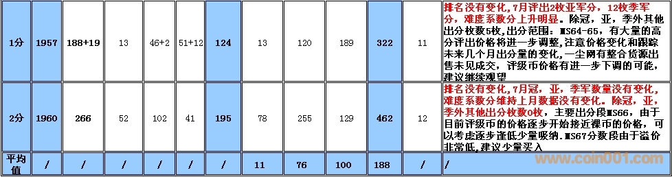 備:這個(gè)采樣的范圍會(huì)有一定的誤差,我將根據(jù)市場(chǎng)和評(píng)級(jí)量的變化每個(gè)季度第一周作出適當(dāng)?shù)恼{(diào)整,難度系數(shù)分在未來如果超過1000分將剔除。 1960年2分在一塵有大量貨源出現(xiàn),位置由原來的第一檔次調(diào)整到第二檔次。難度系數(shù)排序暫時(shí)保留,如分?jǐn)?shù)超過1000分將刪除,請(qǐng)大家留意!