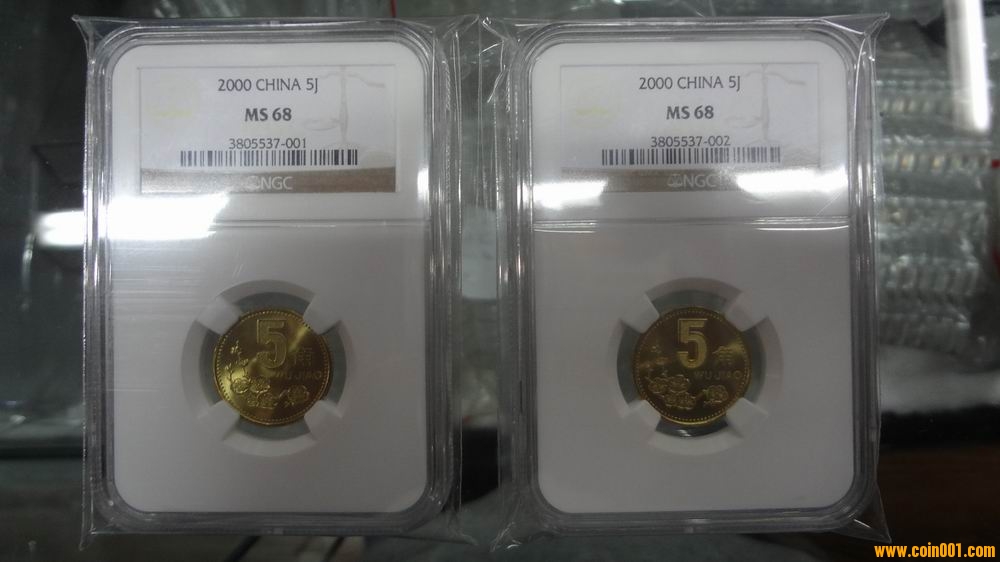 ]MS68分普制千禧年梅花2000年五角(2枚) 狀態(tài)一流 。全國(guó)僅有的2枚普制68分!串號(hào)001,002.