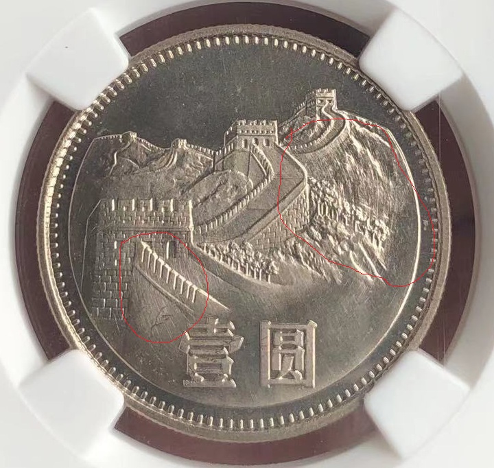 2, 國徽拉絲:故意人為的特效,例如80年和81年的部分元角幣(含80,81冊)。