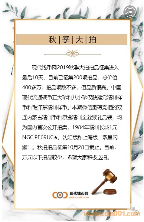 2019秋季大拍征集情況: