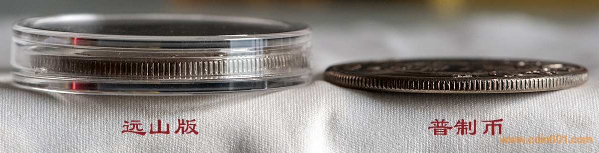 2. 在討論各個(gè)版別時(shí),需要追根尋源地問一下,這些差別會(huì)在制模的哪個(gè)環(huán)節(jié)產(chǎn)生。在縮雕機(jī)上雕出的原模(又稱直雕模)或隨后翻制的鋼模上做出一些小小的改動(dòng),如加日期、廠標(biāo)、珠圈、小印等等是常見的,但是把整個(gè)圖案擴(kuò)大或縮小恐怕是不可能。因此遠(yuǎn)山版和近山版的區(qū)別,可能要追溯到石膏?;蛴屯聊I稀R簿褪钦f起碼有不同的石膏模。那么問題就來了,造幣廠為什么在做了遠(yuǎn)山版的石膏模(姑且把遠(yuǎn)山版看作鼻祖),在沒有任何理由的情況下又另外做一個(gè)近山版的石膏模用于流通幣生產(chǎn)?更符合邏輯的可能性是先做了近山版的石膏模來生產(chǎn)流通幣,然后因?yàn)槠渌鎰e的需求又另外做了遠(yuǎn)山版的石膏模。