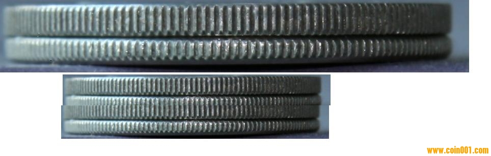 本人請教了模具和沖壓專家,在一次沖壓完成后,沖壓成型的物件在退模過程(模具和物件分離的過程)中會有輕微跳動現(xiàn)象,跳動就極易造成移位;而且錢幣的沖壓機(jī)是一個高速沖壓機(jī),速度越快跳動越大,并且在設(shè)計上還有一道每沖一次會自動推出一枚錢幣工序。如果一個物件反復(fù)沖壓幾次是很容易造成移位的,所得到的圖案將會有重影現(xiàn)象。假設(shè)為生產(chǎn)精制幣,我們把沖壓時自動推出錢幣的工序取消,然后把沖壓過一次的錢幣再沖壓一次或幾次,由于每沖壓一次跳動一次的因素,我想每一枚幣也不能100%和原模具對上。這樣的工作效率極低,廢品率極高,任何一個企業(yè)絕不會這樣去生產(chǎn)。因此本人認(rèn)為,早期精制幣幣齒形成直角,應(yīng)該是同一模具用了比普制幣更大壓力的沖壓機(jī),一次沖壓成型的。這也許是造幣廠在早期開始制造精制幣時為達(dá)到更好的效果而采用的不同工藝。這也就是為何后期紀(jì)念幣,精制和普制大多是直角而沒有區(qū)別的原因吧。