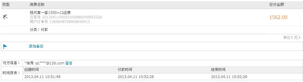 交易號(hào) 2013041100001000900054651876