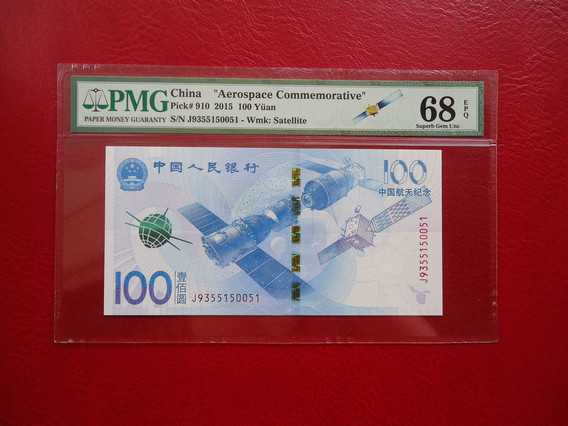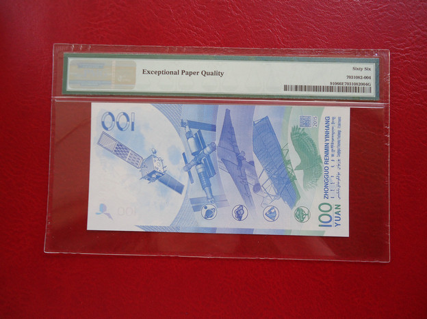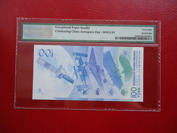 正面看也帶航天衛(wèi)星標(biāo) 背面PMG盒子有注釋 Exceptional Paper Quality, Celebrating China Aerospace Day - 2016.4.24