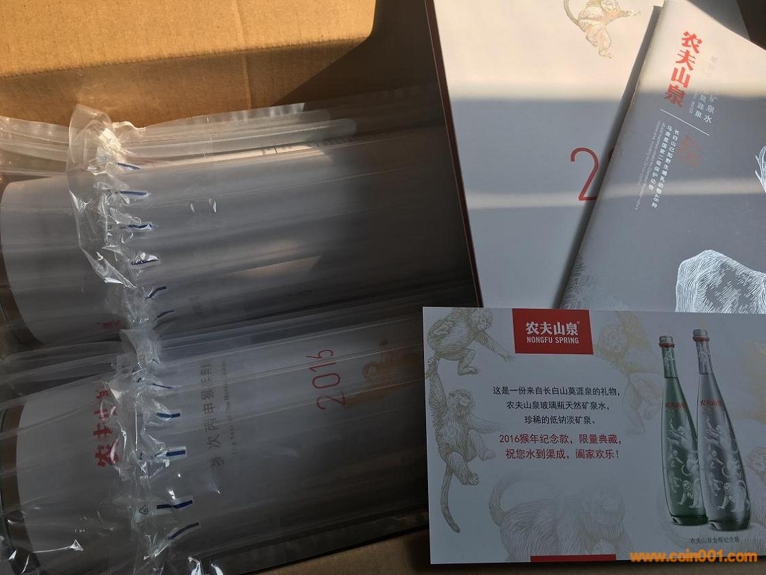 出農(nóng)夫山泉限量紀(jì)念版2016金猴鬧春750ml玻璃瓶水套裝(兩瓶裝)一套!