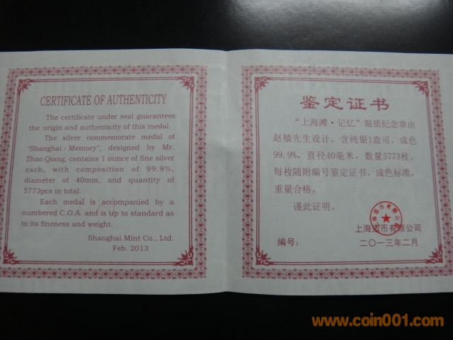 2013年1盎司上海灘記憶 ..