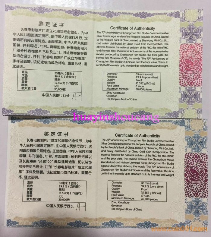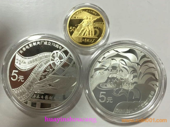 2015年1/10長春電*影70周年金銀幣2400元/套,有5套