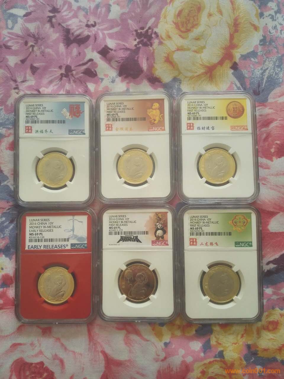 3,二猴紀(jì)念幣NGC MS69PL 6枚一起555元