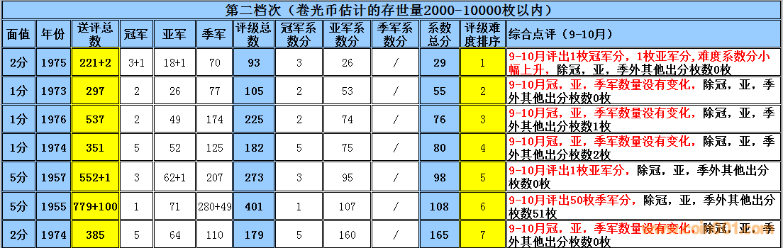 早期分幣評級難度排 ..