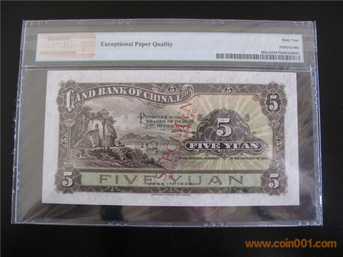 (實際發(fā)行當(dāng)在18年) 1、5、10元地名:上海(黑色加蓋——樣本,單面印刷)。