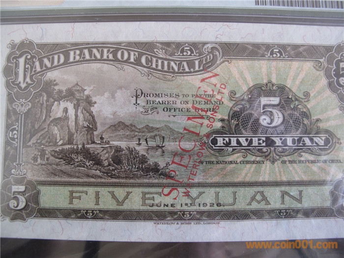 (2)紙幣種種:(各券都是英國華德路公司承?。?br />(1)民國十五年(1926年6月1日)版 1、5、10元地名:天津(紅色加蓋——樣本)