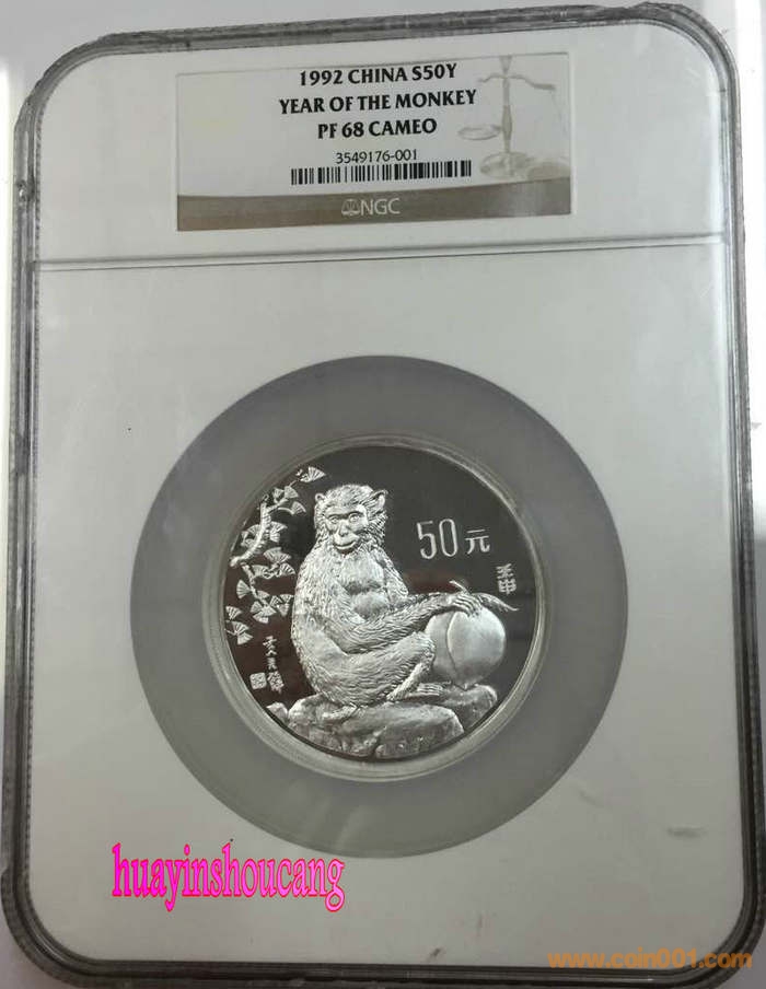 1992年5盎司生肖猴銀幣NGC68====14000