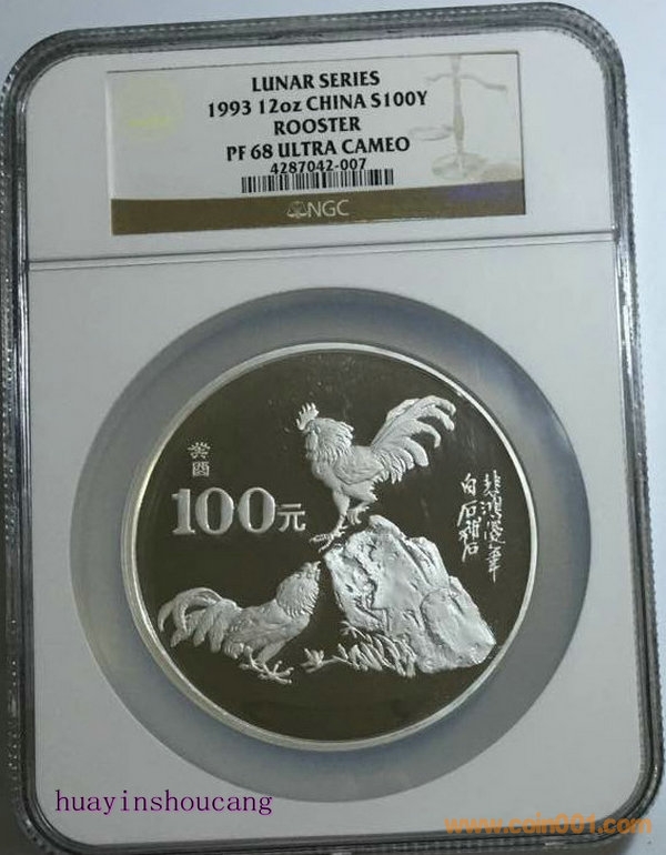 1993年12盎司生肖雞銀幣 NGC68===68000