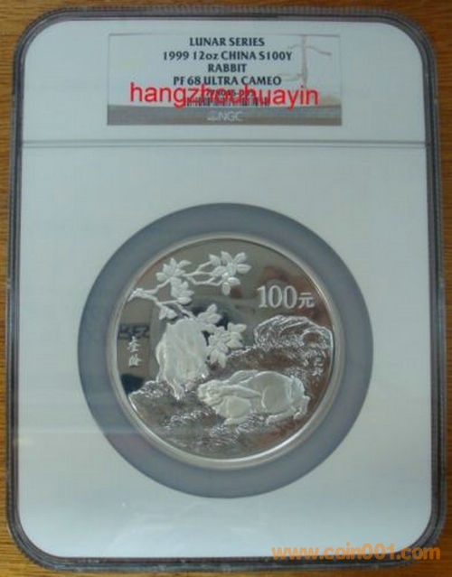 1999年12盎司生肖兔銀幣NGC68===42000