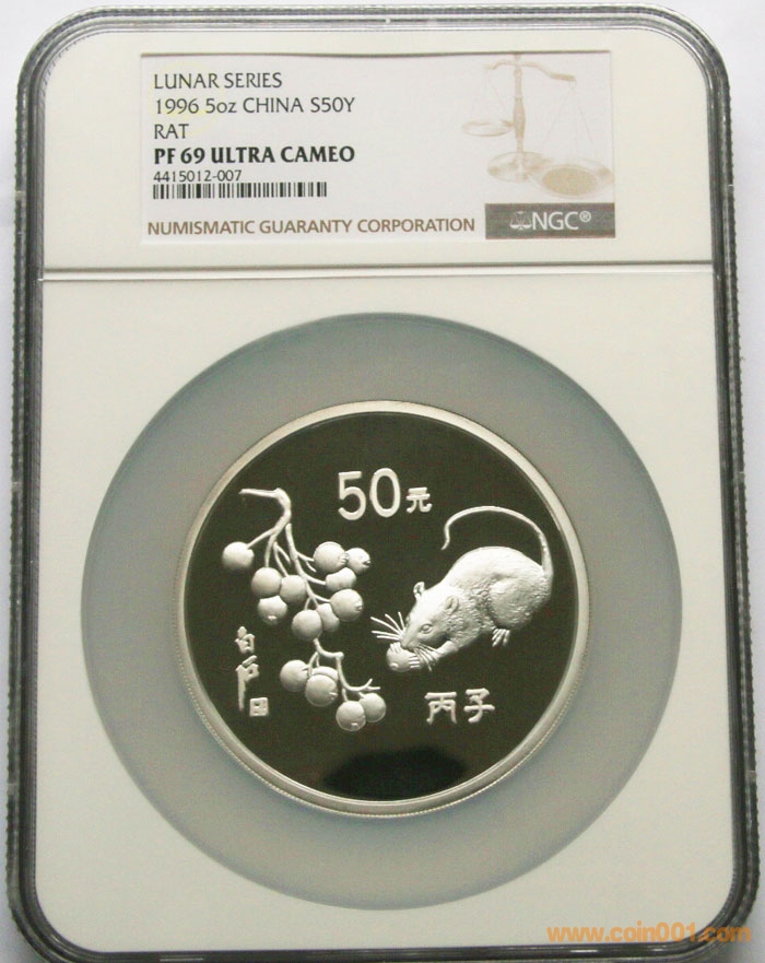 1996年5盎司生肖鼠銀幣NGC69 29500元