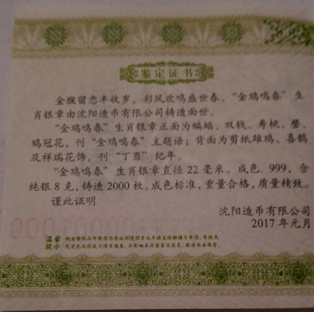 沈陽造幣公司雞年賀 ..