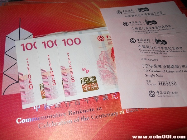 出 3冊 中銀紀念鈔