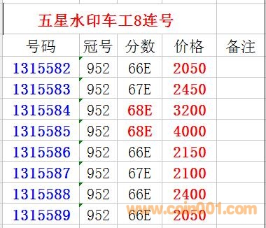 ◆8連號五星車工 絕品 ..