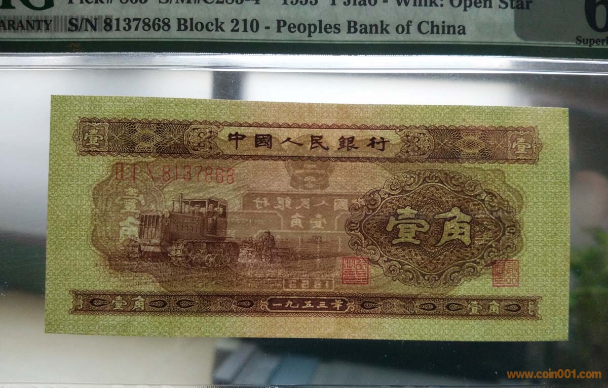 ◆二版幣黃一角 拖拉機(jī)黃壹角 絕品刀評(píng)PMG66/67EPQ