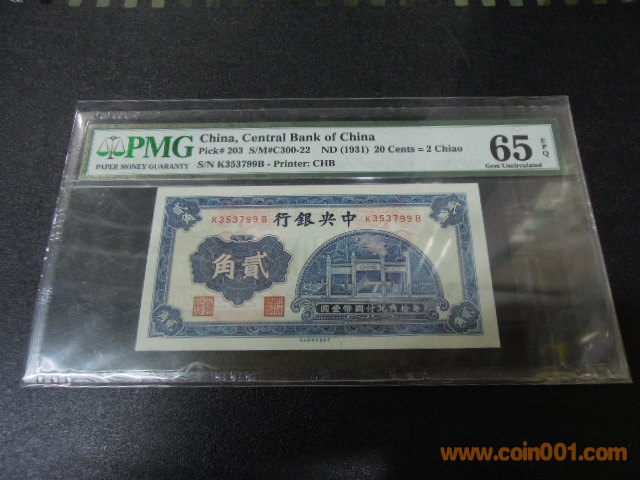 中央銀行2角 PMG65E