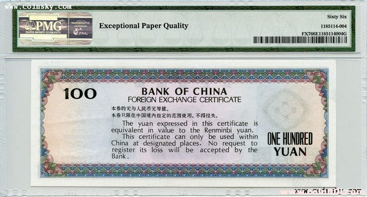 PMG 66EPQ 中國(guó)銀行外匯兌換券1979年100元