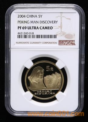 周口店“北京人”精制流通紀(jì)念幣一枚(帶冊(cè)、帶證書、NGC P69) 價(jià)錢1350