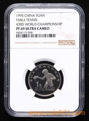 第43屆世界乒乓球錦標(biāo)賽精制流通紀(jì)念幣一枚(NGC PF69) 價(jià)錢 3600