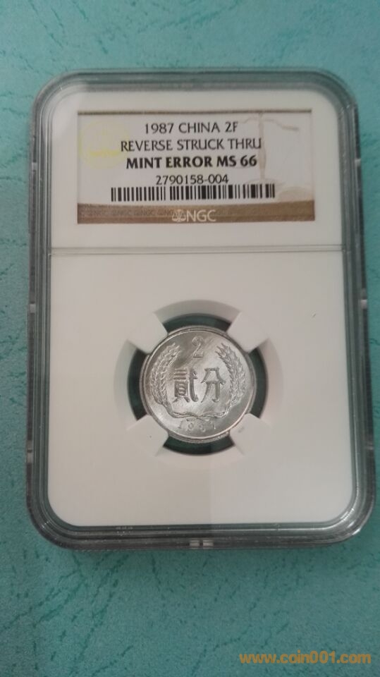 早年卷拆品,送評(píng)美國(guó)本土評(píng)級(jí)的1987年2分弱打幣一枚: