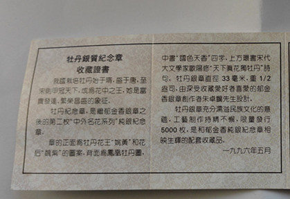 出售早期 牡丹銀章