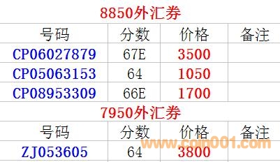 ◆外匯兌換券 8850 7950 ..