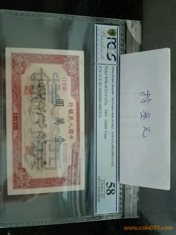 第一版人民幣一千元驢子礦車,號碼9725392,pcgs58opq,價格8900。