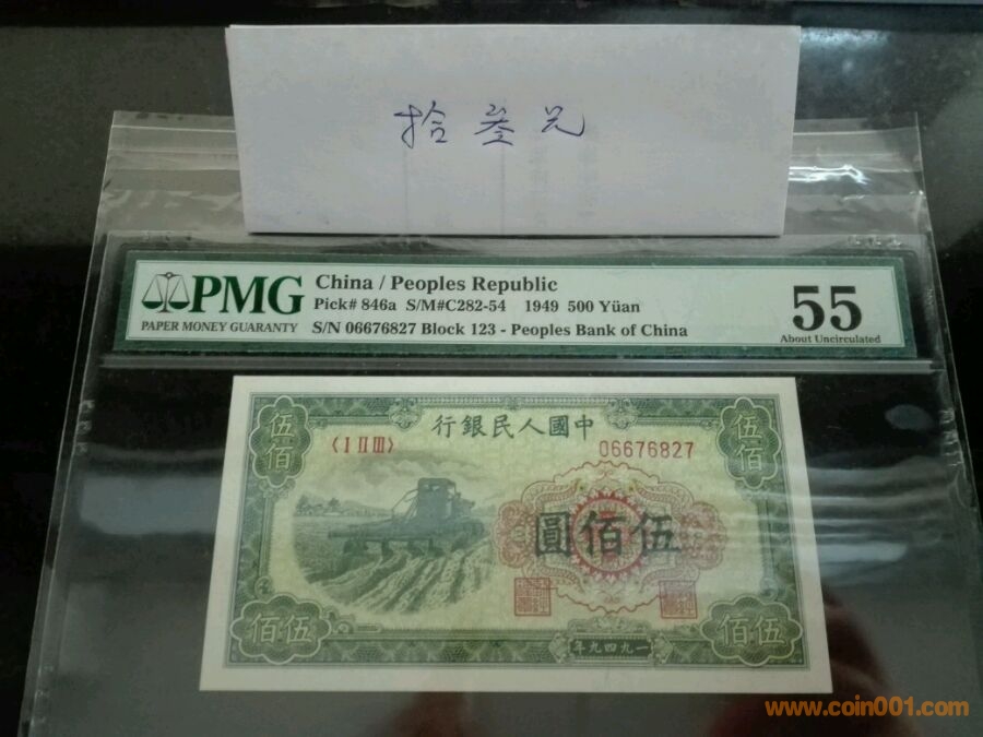 第一版人民幣五百元耕地,號碼06676827,pmg55,價格3300。