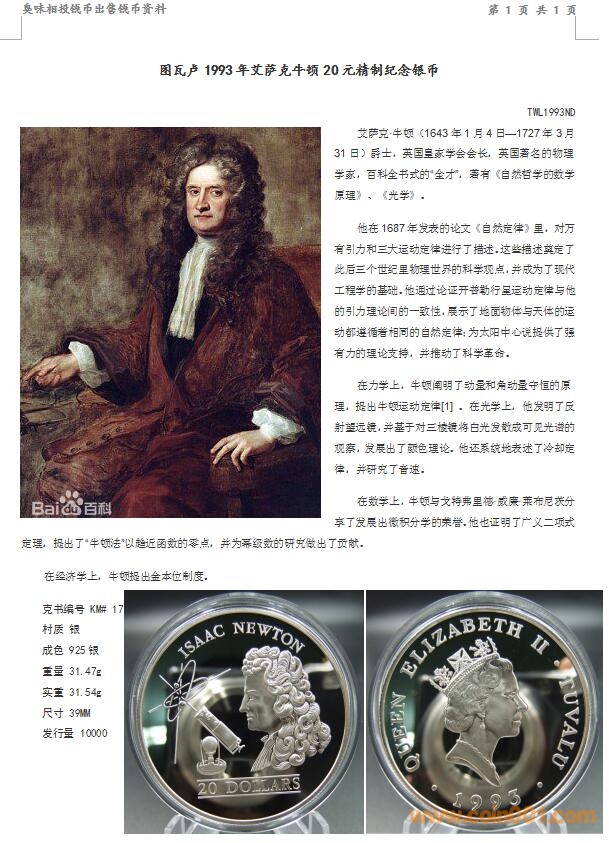 圖瓦盧1993年艾薩克牛 ..