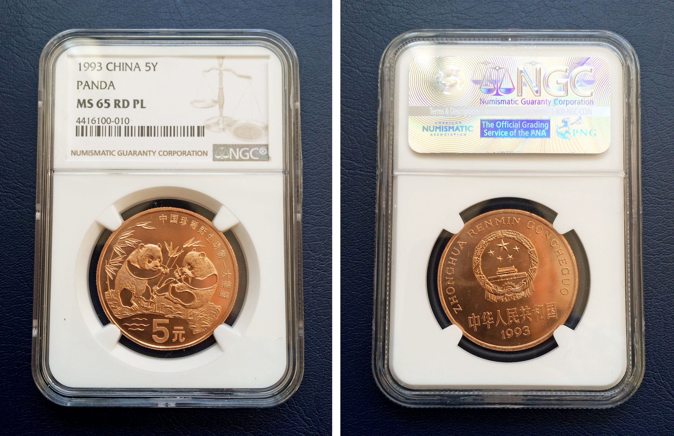大熊貓: 4416100-010 MS65RDPL 品相還不錯(cuò),國(guó)徽面有輕微絲痕,190元。