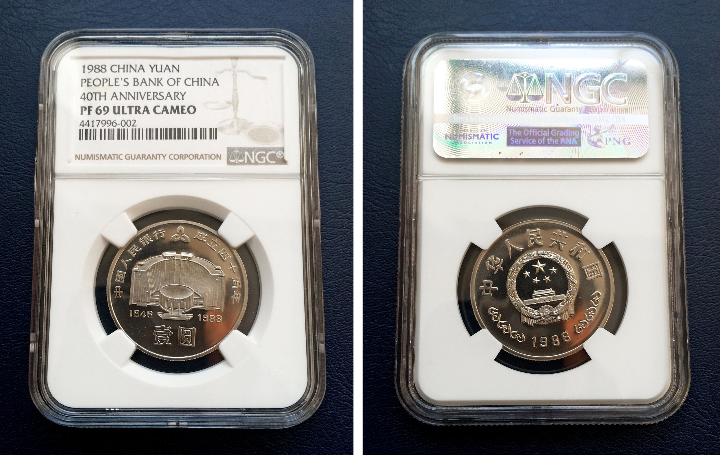 精制建行: 4417996-002 PF69UC 無(wú)包裝及證書,品相一流,非常漂亮,12500元;