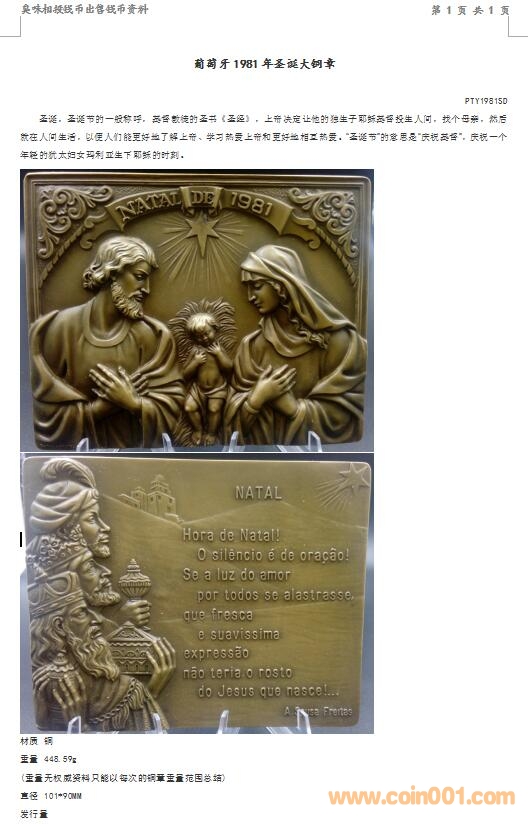 葡萄牙1981年圣誕大銅 ..