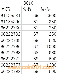 8010  號(hào)碼:61135890 67分。