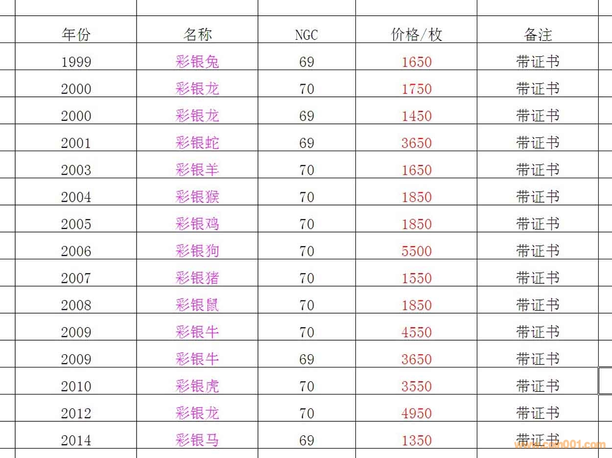 惠售;NGC 70/69 1998-2014 彩銀虎、彩銀兔、彩銀龍、彩銀蛇、彩銀馬、彩銀羊、彩銀猴、彩銀雞、彩銀狗、彩銀豬、彩銀鼠、彩銀牛
