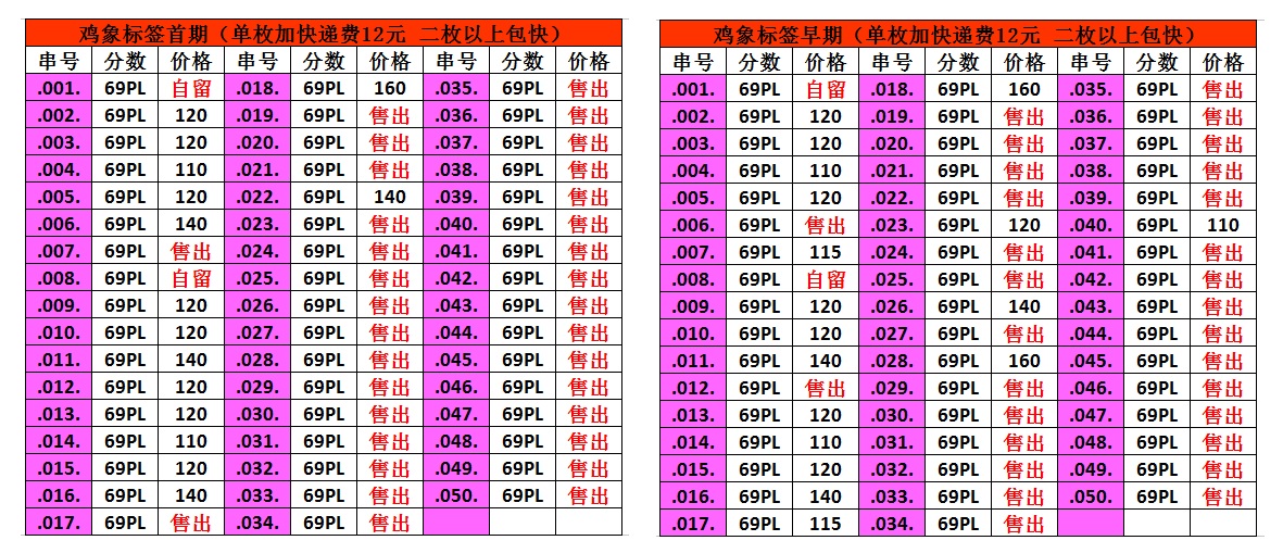 這套雞象標簽是為了配套去年的金猴標而出品由于標簽出的比較晚已接近首期和早期的送評截止日期加之上海廠標要整合送評,所以送評的人比較少。剛一拿到手就在朋友圈銷售過半,喜歡的朋友不要錯過機會。 沈劍輝 微信號 13091872888 (請注明評級幣) 手機號 13091872888 支付寶 13091872888購買一枚快遞費12元,默認天天快遞,2枚包郵。如需順豐陸運請支付18元,順豐空運請支付23元。多網同售,以防售缺。確認后請微信通知我下,謝謝。評級幣以分數為準,包盒子不鼓不裂,確認后我會微信發(fā)圖給您再次查驗。感覺沒問題您再付款,售出后不退