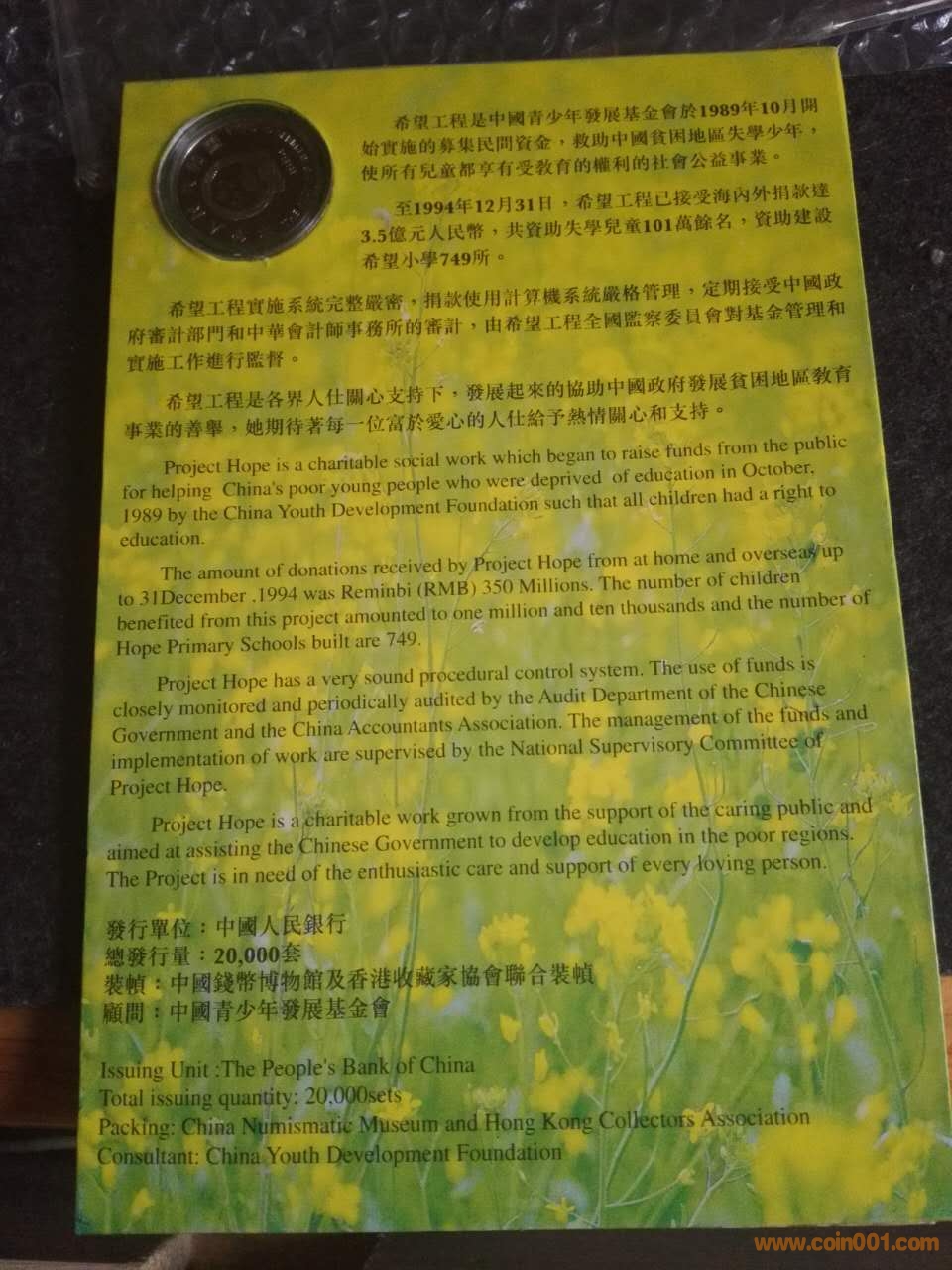 精制希望工程紀(jì)念幣 ..