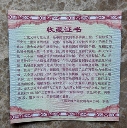 出售長城紀(jì)念章 黃銅 ..