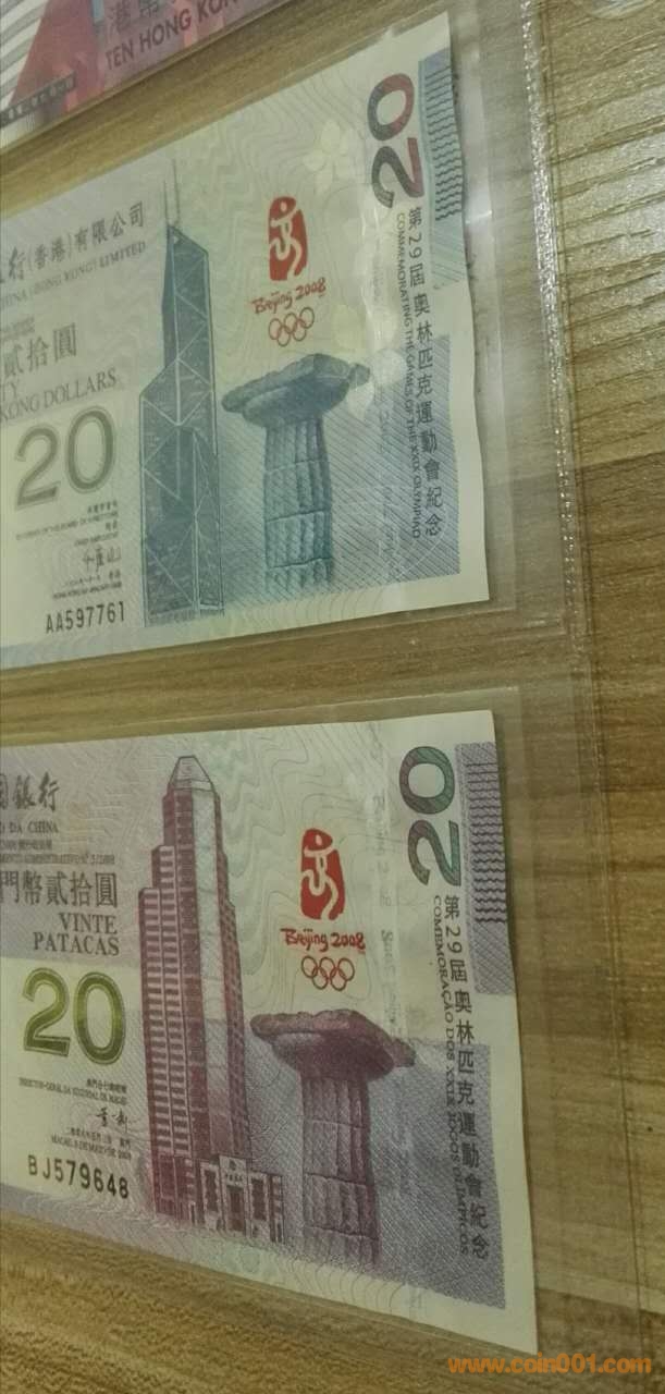 港澳 奧運(yùn)紀(jì)念鈔一對