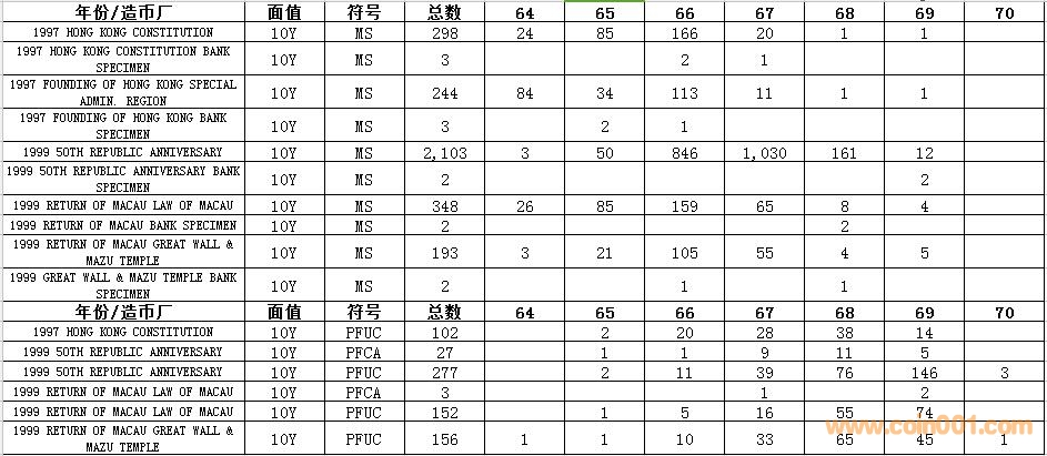 NGC硬幣評級數(shù)量報告 ..
